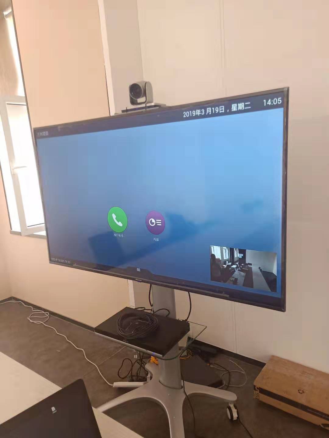 蘭州**商業(yè)管理有限公司作為該控股公司旗下子公司,急需建設(shè)一套視頻會(huì)議,與上海、重慶等地召開視頻會(huì)議,為著快速部署,本次采用寶利通GROUP310+65寸電視+移動(dòng)支架方式。