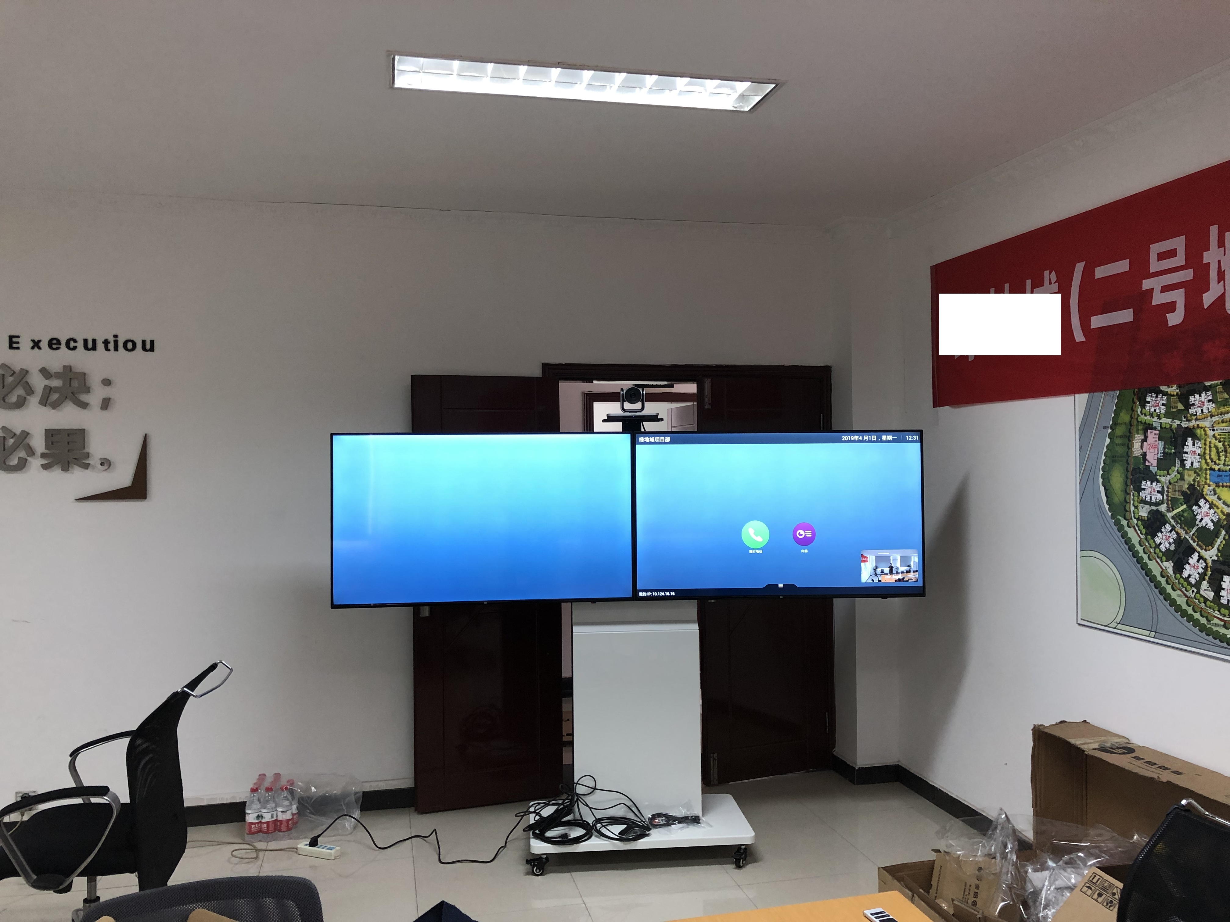 重慶**房地產(chǎn)開發(fā)有限公司總部位于大石壩,現(xiàn)目前萬州、涪陵、大渡口均設(shè)有項(xiàng)目部,萬州、涪陵項(xiàng)目部已于去年7、12月份相繼成功搭建視頻會議,而大渡口項(xiàng)目部近期發(fā)展迅猛,各種業(yè)務(wù)往來日益增加,于是增加一套視頻會議系統(tǒng),安裝一套寶利通GROUP310,搭配2個電視機(jī)和雙屏移動支架,完美呈現(xiàn)視頻會議效果。