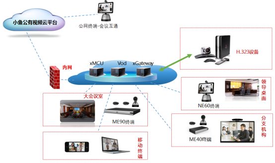 客戶的業(yè)務(wù)合作方可以通過公有云與客戶內(nèi)網(wǎng)終端進行會議溝通。