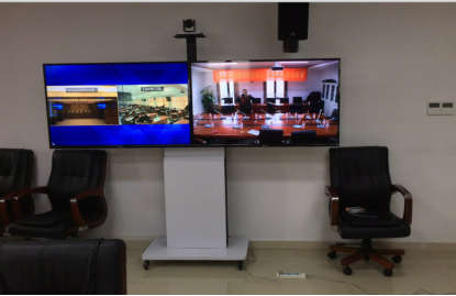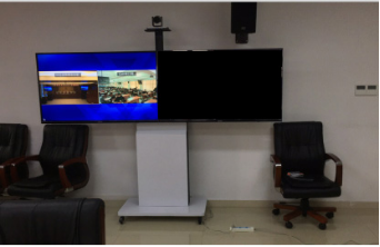 ①在中心機(jī)房搭建一套MCU設(shè)備和公私網(wǎng)穿越設(shè)備;②移動(dòng)電視支架的電視機(jī)輸出,電源各布2根,一根明線、一根暗線,做槽板;