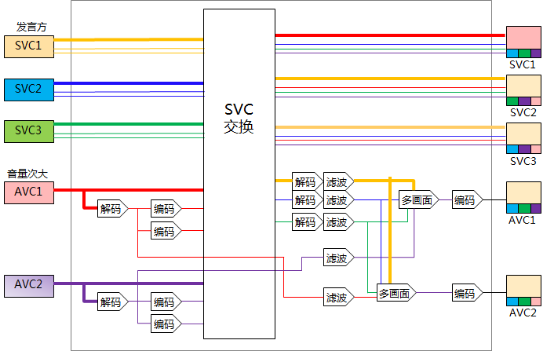 (5)每個(gè)AVC會(huì)場(chǎng)的多畫(huà)面,根據(jù)該會(huì)場(chǎng)的信令協(xié)商結(jié)果以最大能力編碼。