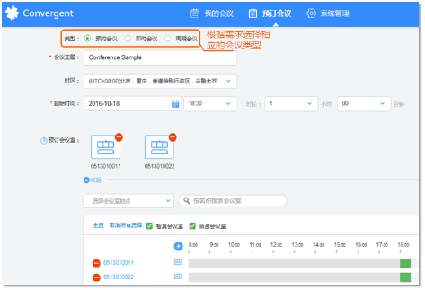 根據(jù)會(huì)議召開(kāi)時(shí)間的不同,可預(yù)訂的會(huì)議類(lèi)型包括:預(yù)約會(huì)議、即時(shí)會(huì)議和周期會(huì)議。
