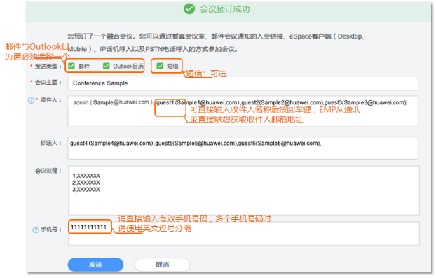 圖1-3 發(fā)送會(huì)議通知界面示例