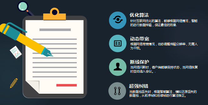 (4)音頻優(yōu)先:在帶寬/網絡質量下降時自動優(yōu)先保證語音通信