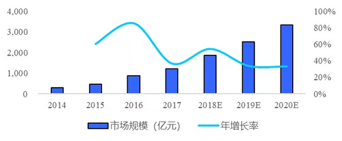 2014年來(lái),我國(guó)視頻行業(yè)市場(chǎng)規(guī)模增長(zhǎng)率保持在30%以上,預(yù)計(jì)到2020年,視頻行業(yè)市場(chǎng)規(guī)模將高達(dá)3300億元。