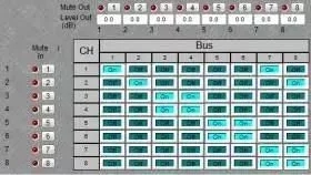參量型矩陣的節(jié)點(diǎn),除了“on”與“off”的功能外,還可以進(jìn)行對(duì)該節(jié)點(diǎn)的輸出音量值調(diào)整。調(diào)整單位通常為“dB”(分貝)。即可以調(diào)整每個(gè)輸入信號(hào)分配到指定輸出端口的數(shù)值。