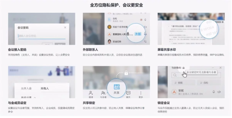參會(huì)人受控:會(huì)議密碼、設(shè)置會(huì)議與會(huì)者范圍、鎖定會(huì)議后無(wú)法入會(huì)、外部人員入會(huì)標(biāo)識(shí)。